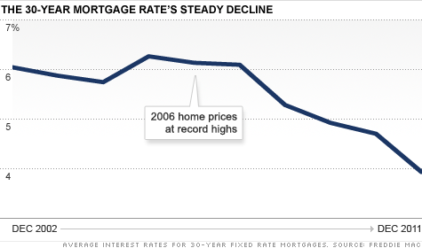 Mortgage rates tend to closely track Treasury bond yields, which have also been very low lately. For the past three months, 10-year Treasury notes have often fallen below the 2% mark as bond investors steer clear of Europe and its debt woes and buy U.S. Treasuries instead.